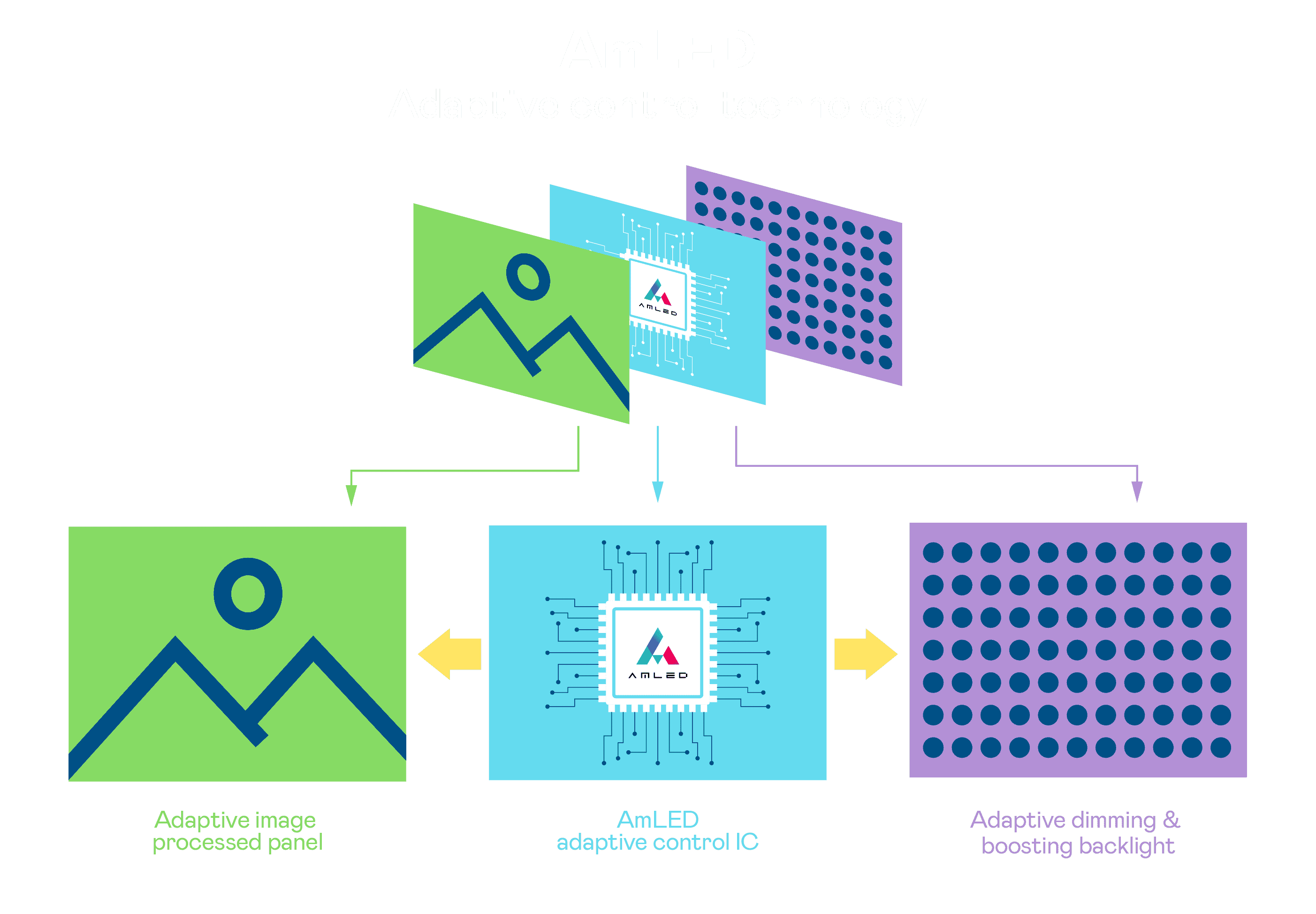 AmLED 具备更省电与低蓝光特性。。与一般的 LED 背光显示技术相比,,,,由于 AmLED 常时处于局部调光状态,,,其功耗仅有前者的 50% 左右,,,,同时 AmLED 还具备低蓝光特性,,满足长时间使用的护眼需求。。。。